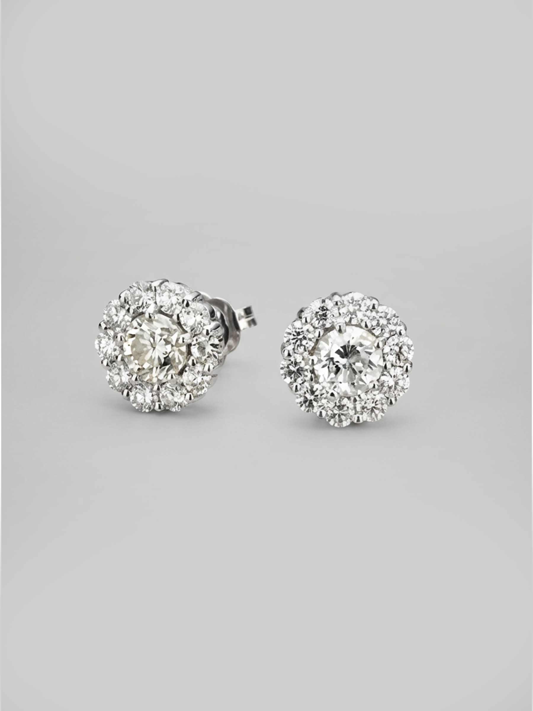 Versatile diamond stud earrings with a removable halo design.
