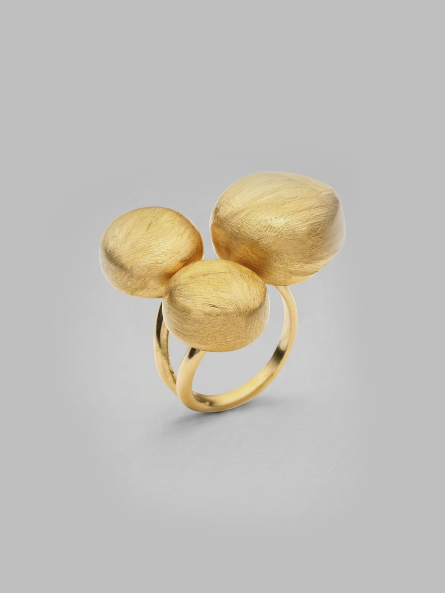 A sculptural 18ct yellow gold ring defined by flowing cushion-shaped forms and rich textured detail.