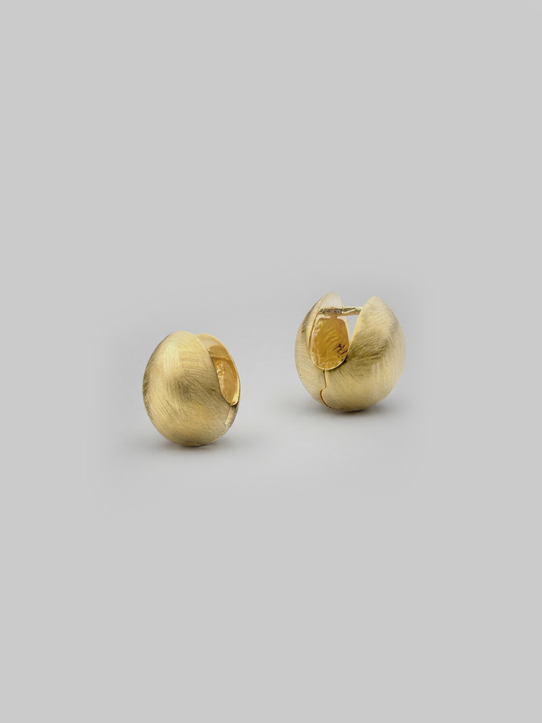 Sculptural 18ct yellow gold huggie earrings defined by organic form and rich etched texture.