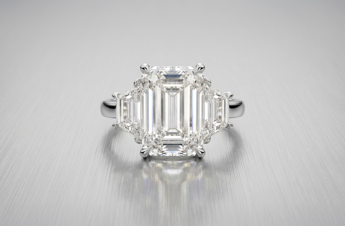 Platinum & Emerald-Cut Diamond Trilogy Ring