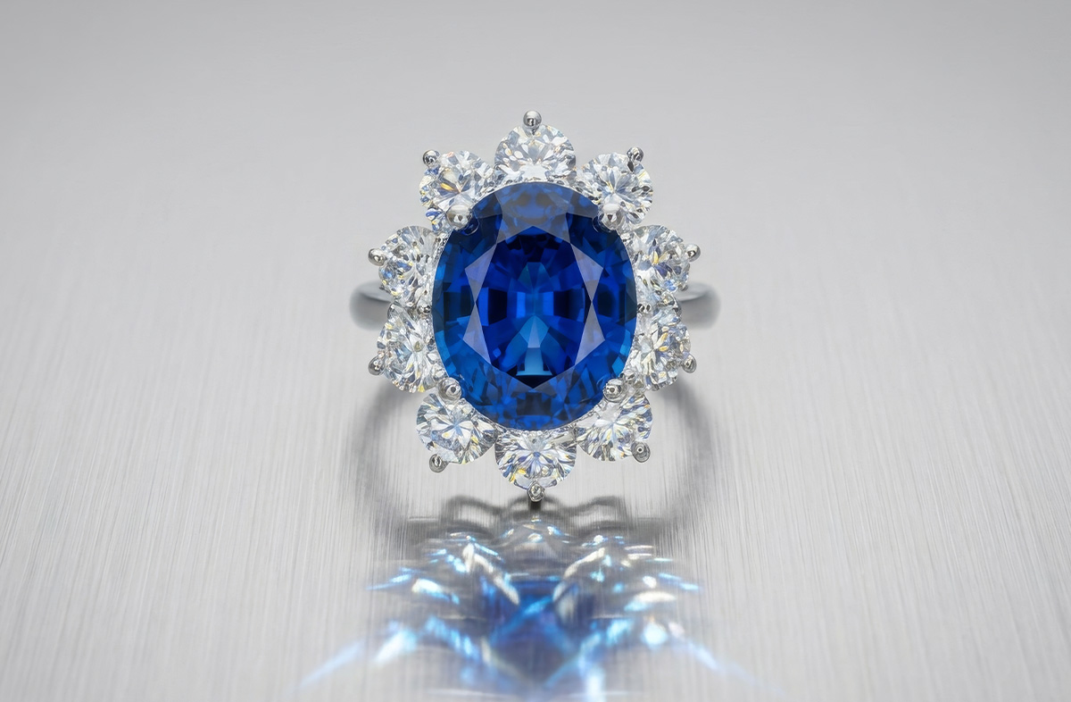 Handmade Platinum, Diamond & Ceylon Sapphire Ring
